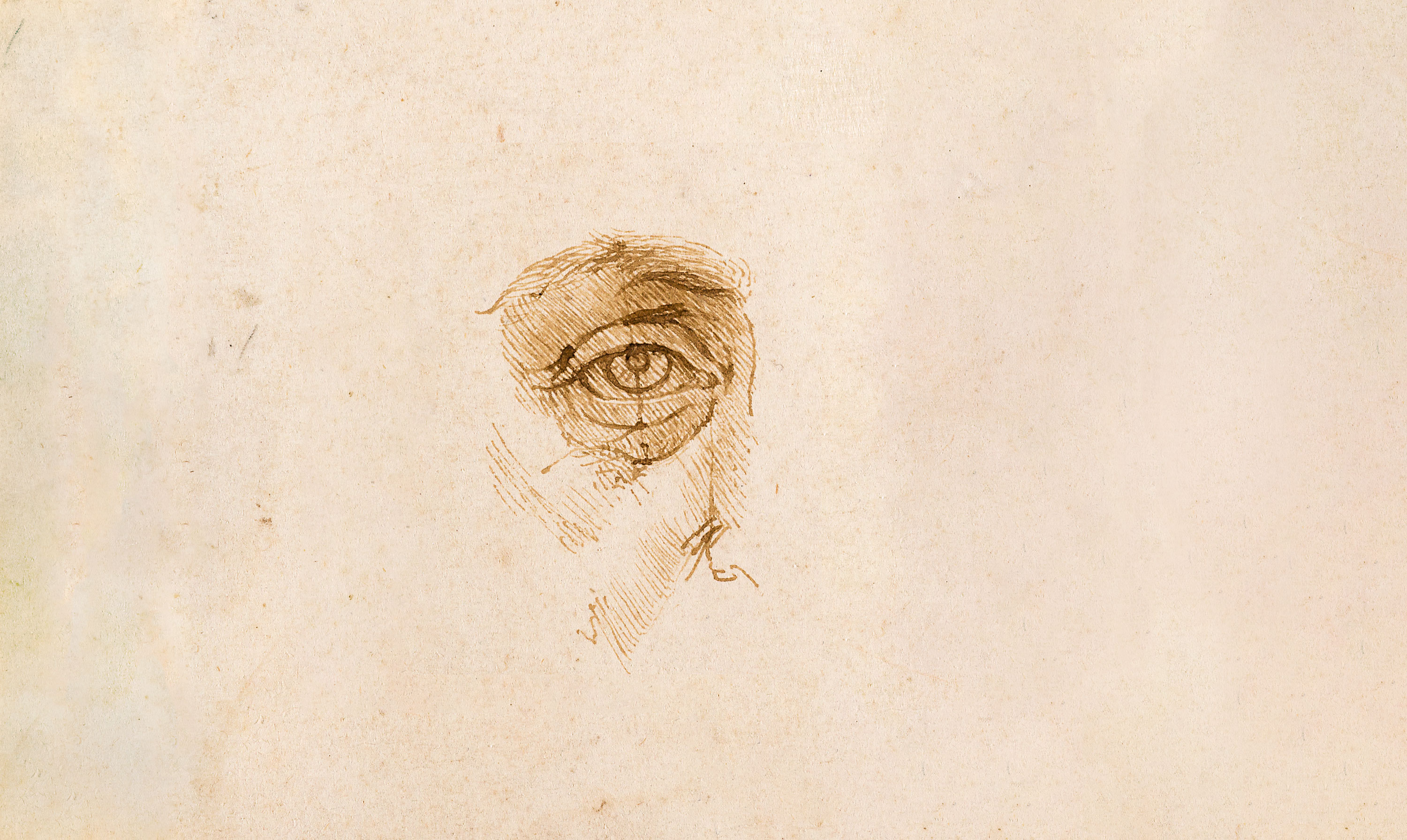 Leonardo da Vinci. Studies of proportions of the face and eye, with notes, pen, brown ink on paper, c. 1489-1490, Turin, Musei Reali-Biblioteca Reale, Inv. D.C. 15574 e D.C. 15576, coll. Dis.It.Scat.1.21r e Dis.It.Scat.1.20r. Courtesy of the MiC-Musei Reali, Biblioteca Reale of Turin, photo: Ernani Orcorte.